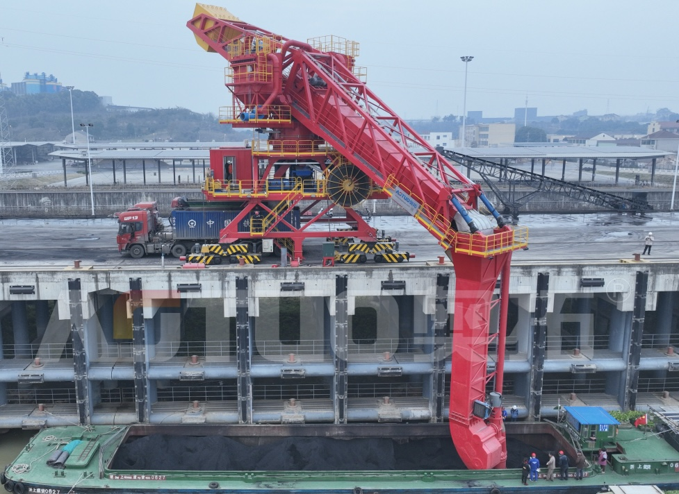AOTUO奥拓股份工程师团队通过6年潜心研发与12个月实物运行功能试验,终于攻克了结构、材料、工艺等多项技术难题,最终推出了可以接卸水泥熟料的“水泥熟料(煤炭)螺旋卸船机及中转配套系统”高端装备,系统性地解决了港口水泥熟料、煤炭、矿石等高硬度散货物料卸船中转环节中长期存在的设备磨损严重、能耗高、扬尘大、寿命短等技术难题与运营痛点。该装备同时还实现了智能避障与状态在线监测等功能,既提高了设备的安全性,又大大降低维护成本。